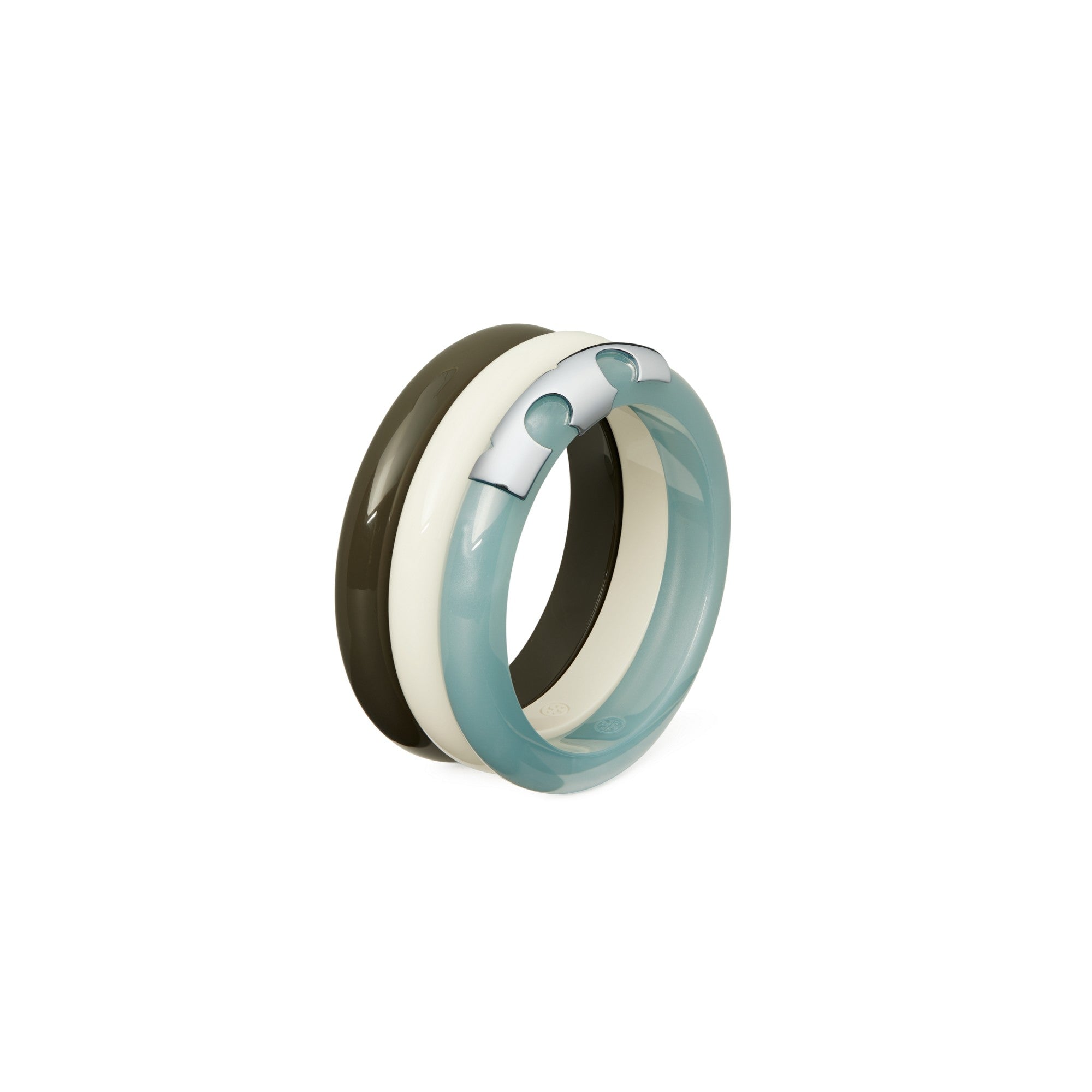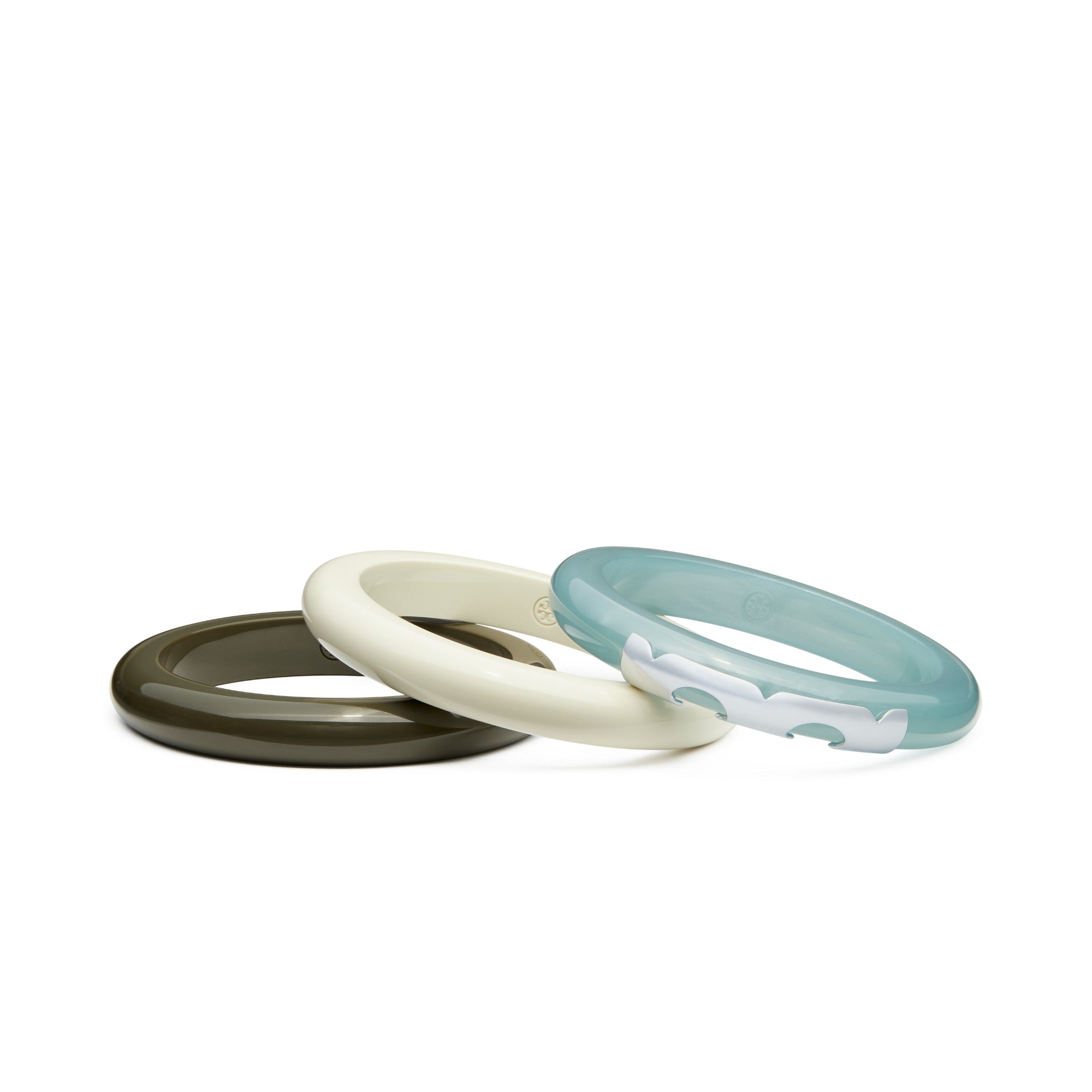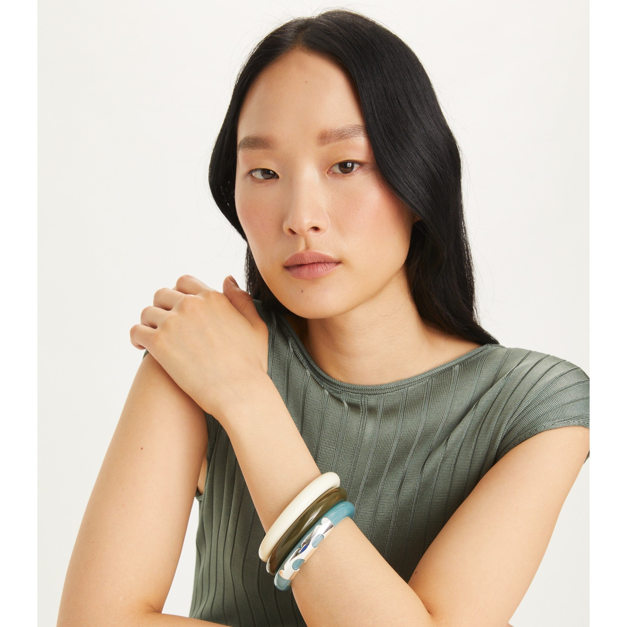 Women Resin Bangle Set - Soft Blue / Ivory / Green