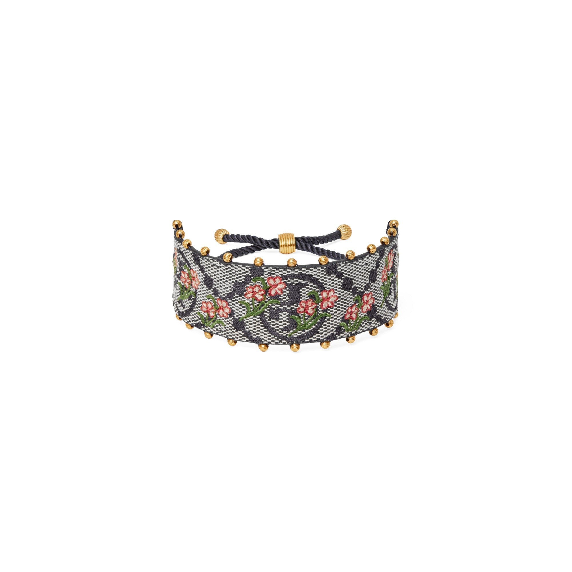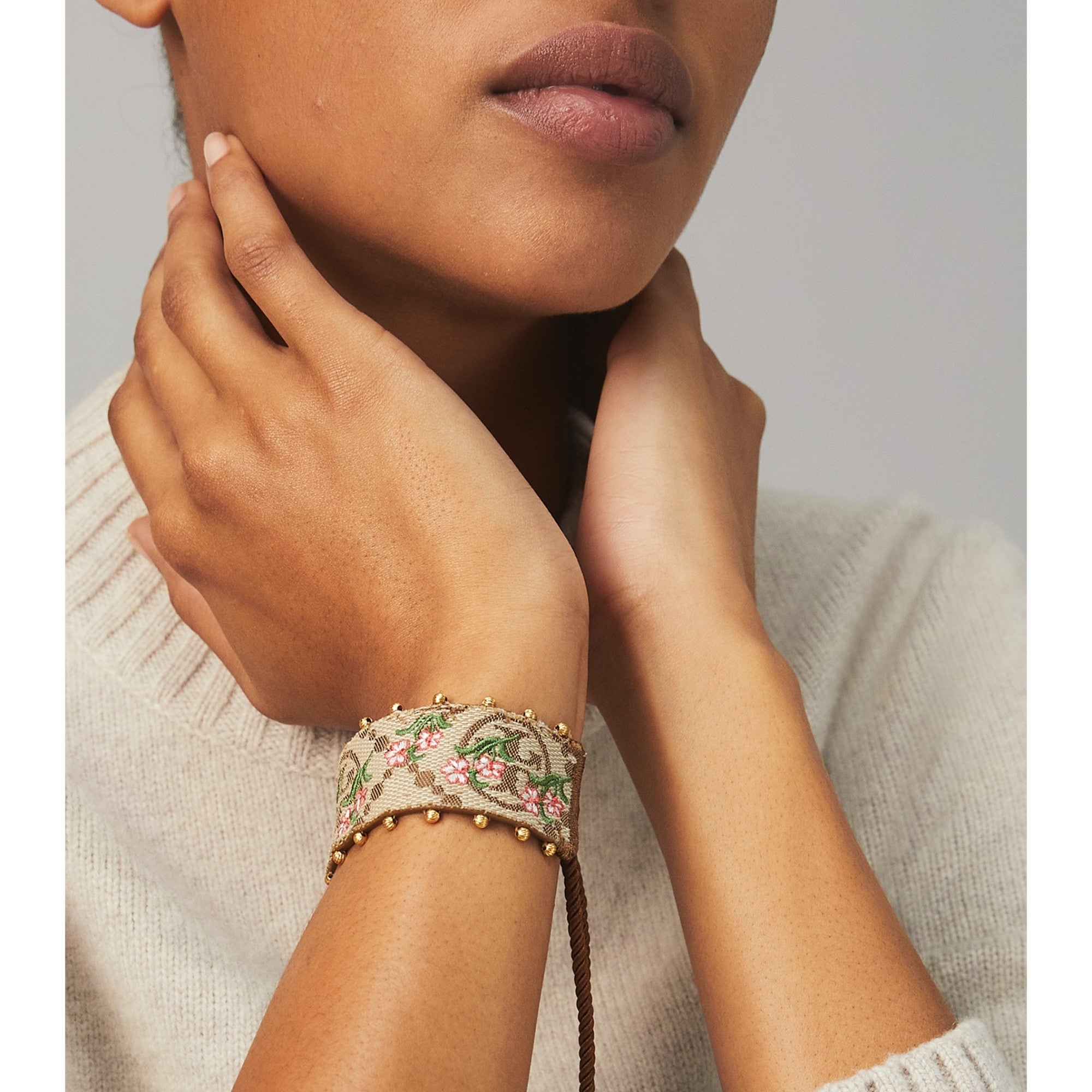 Women T Monogram Floral Bracelet - Rolled Brass / Navy