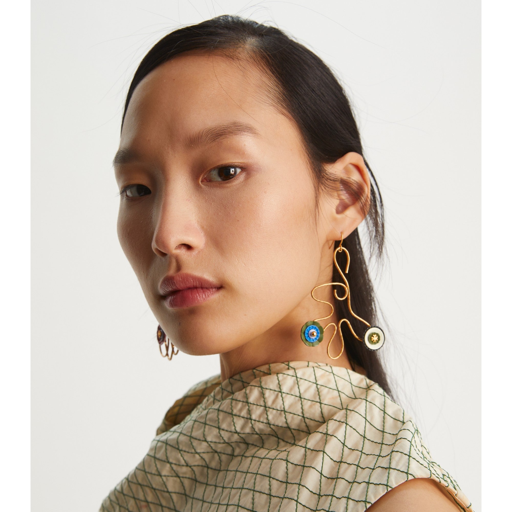 Women Kira Button Stud Earring - Rolled Brass / Burgundy / Ivory