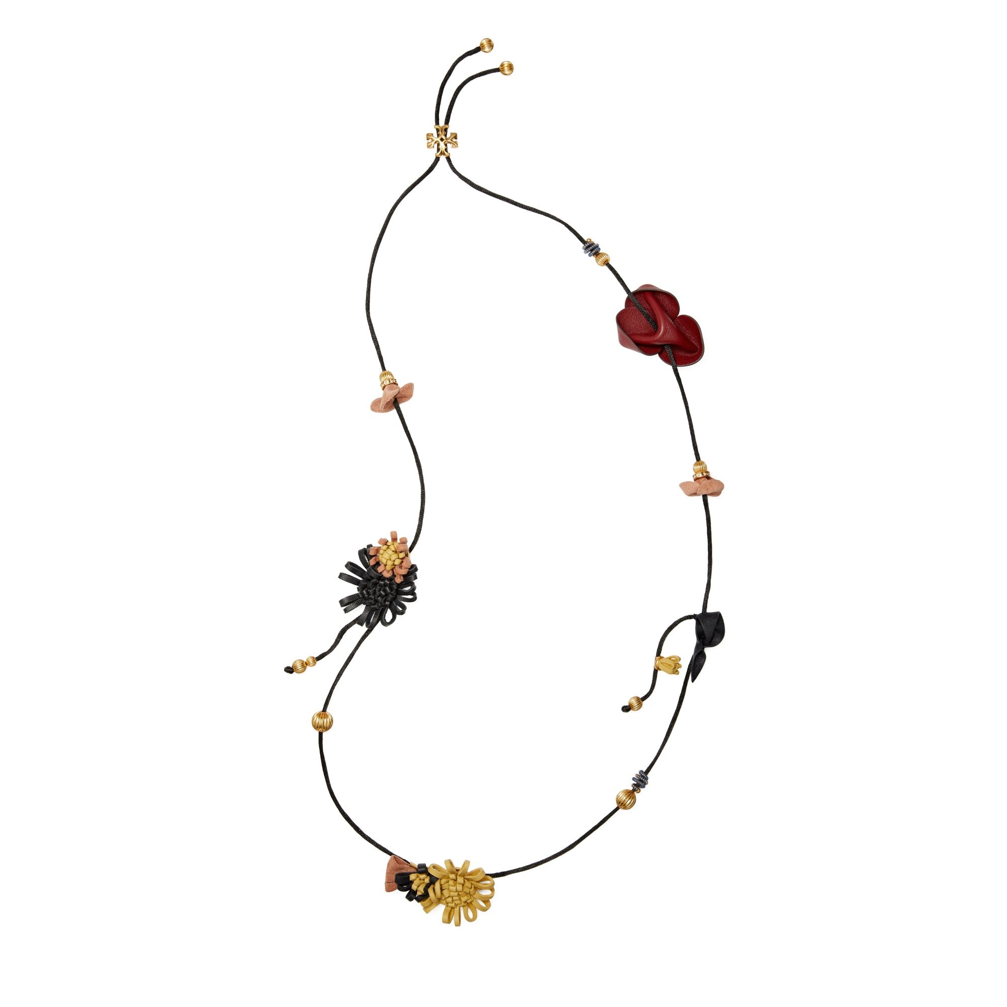 Women Roxanne Leather Long Necklace - Rolled Brass / Multi