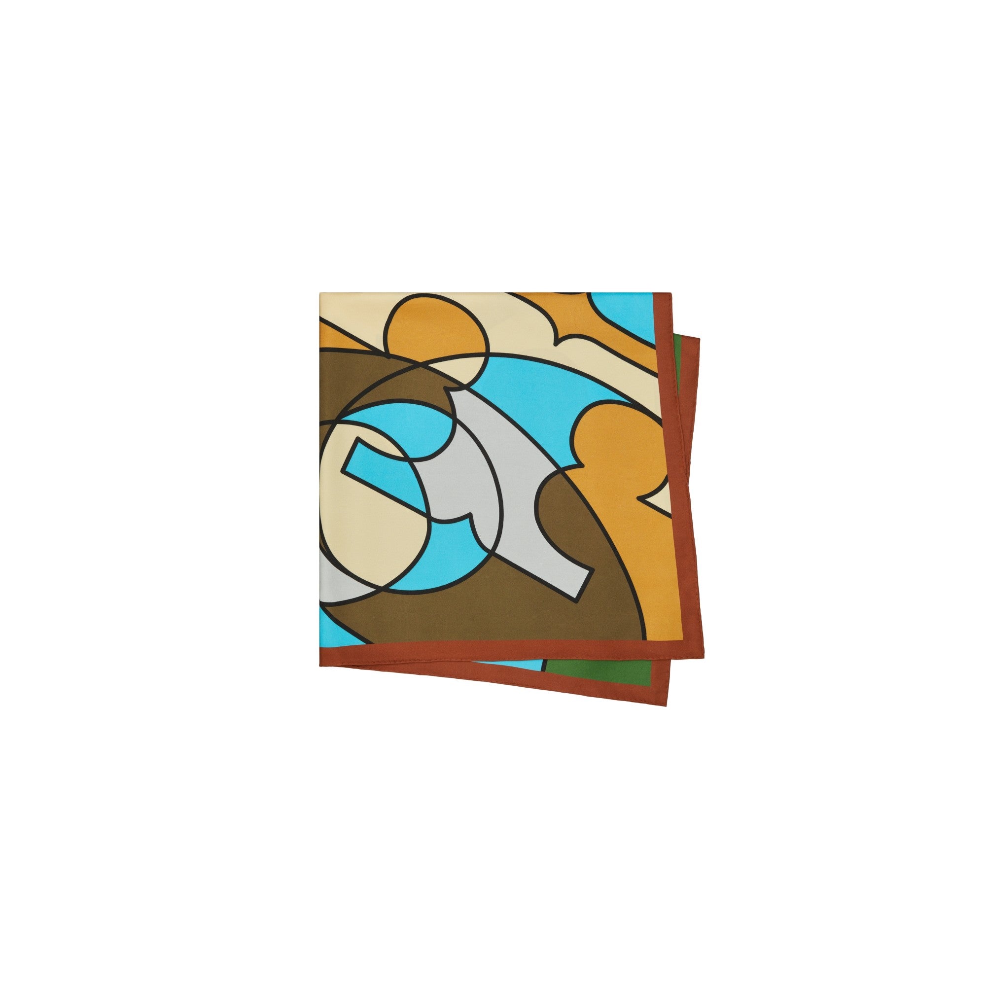 Women Abstract Logo Lines Silk Square Scarf - Blue
