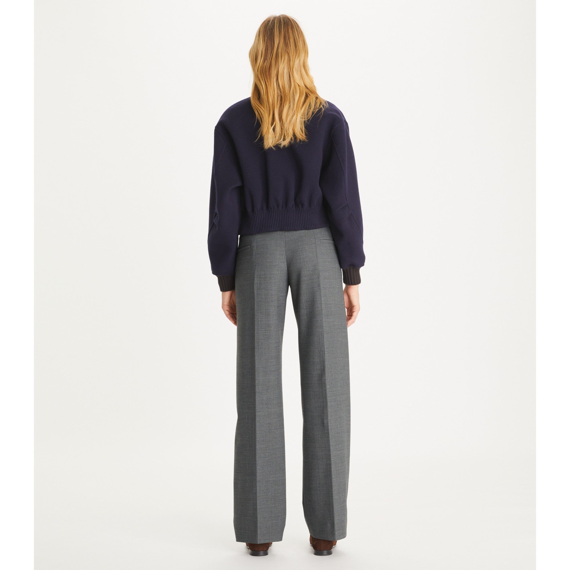 Women Cropped Slim Wool Pant - Black