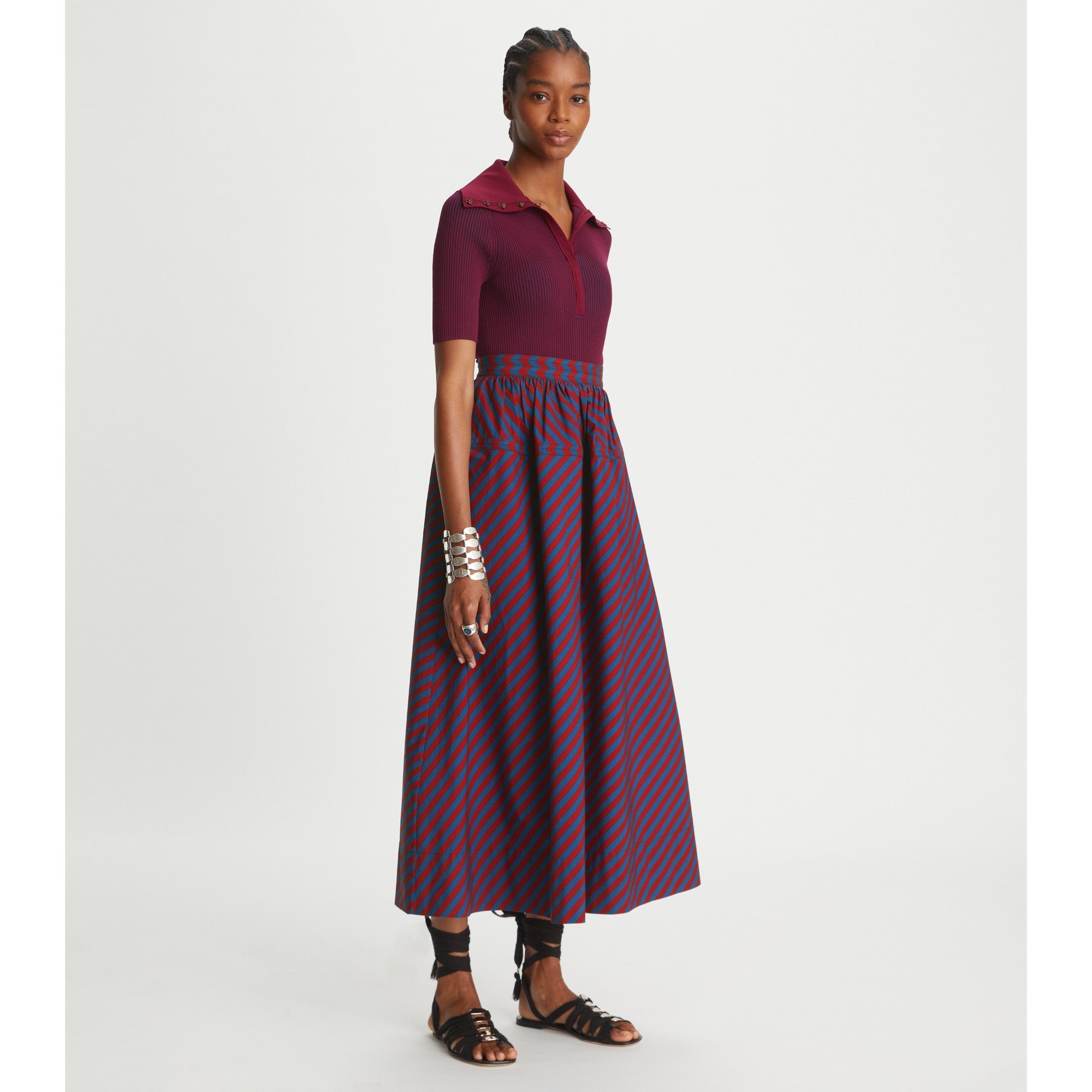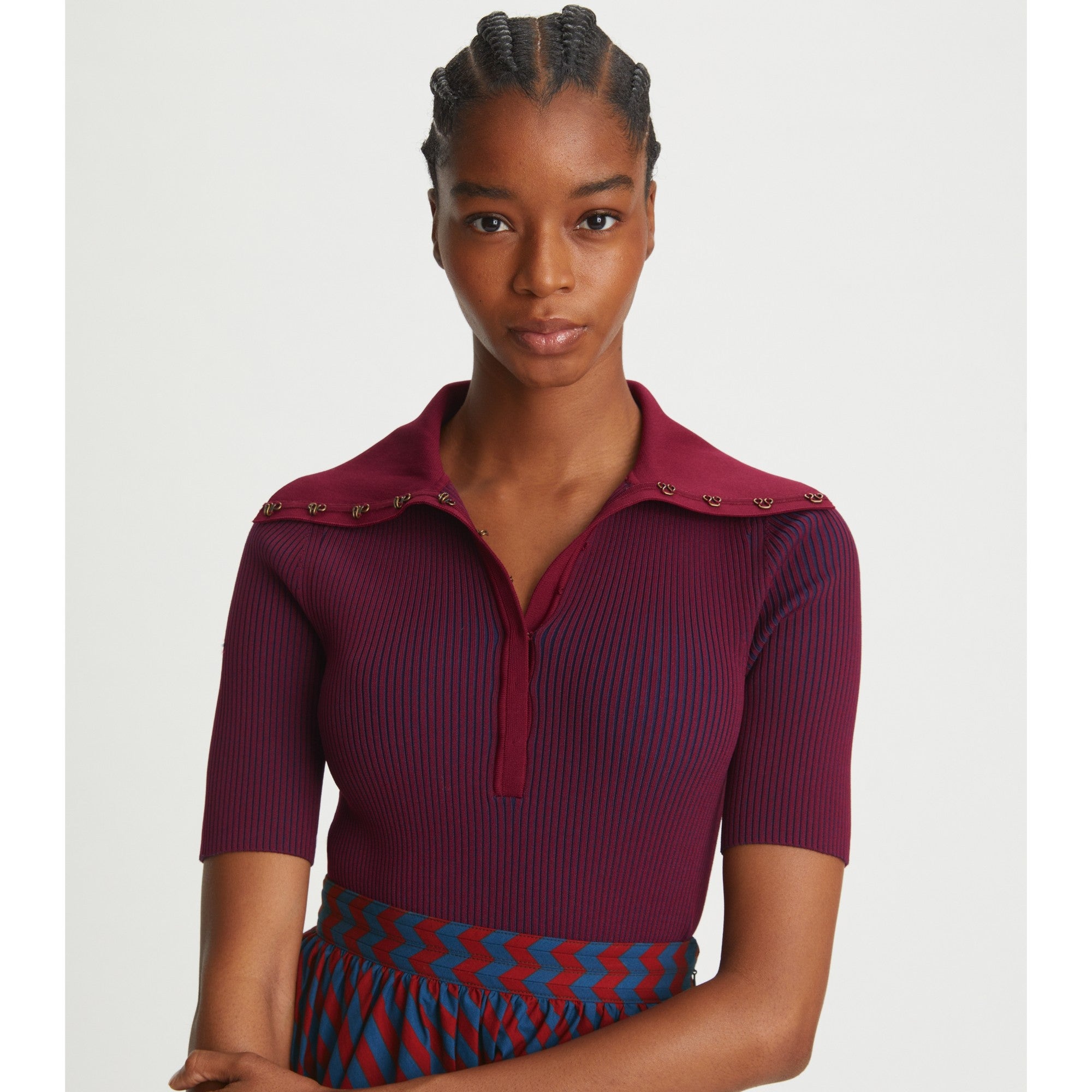 Women Plaited-Rib Polo - Royal Burgundy / Tory Navy