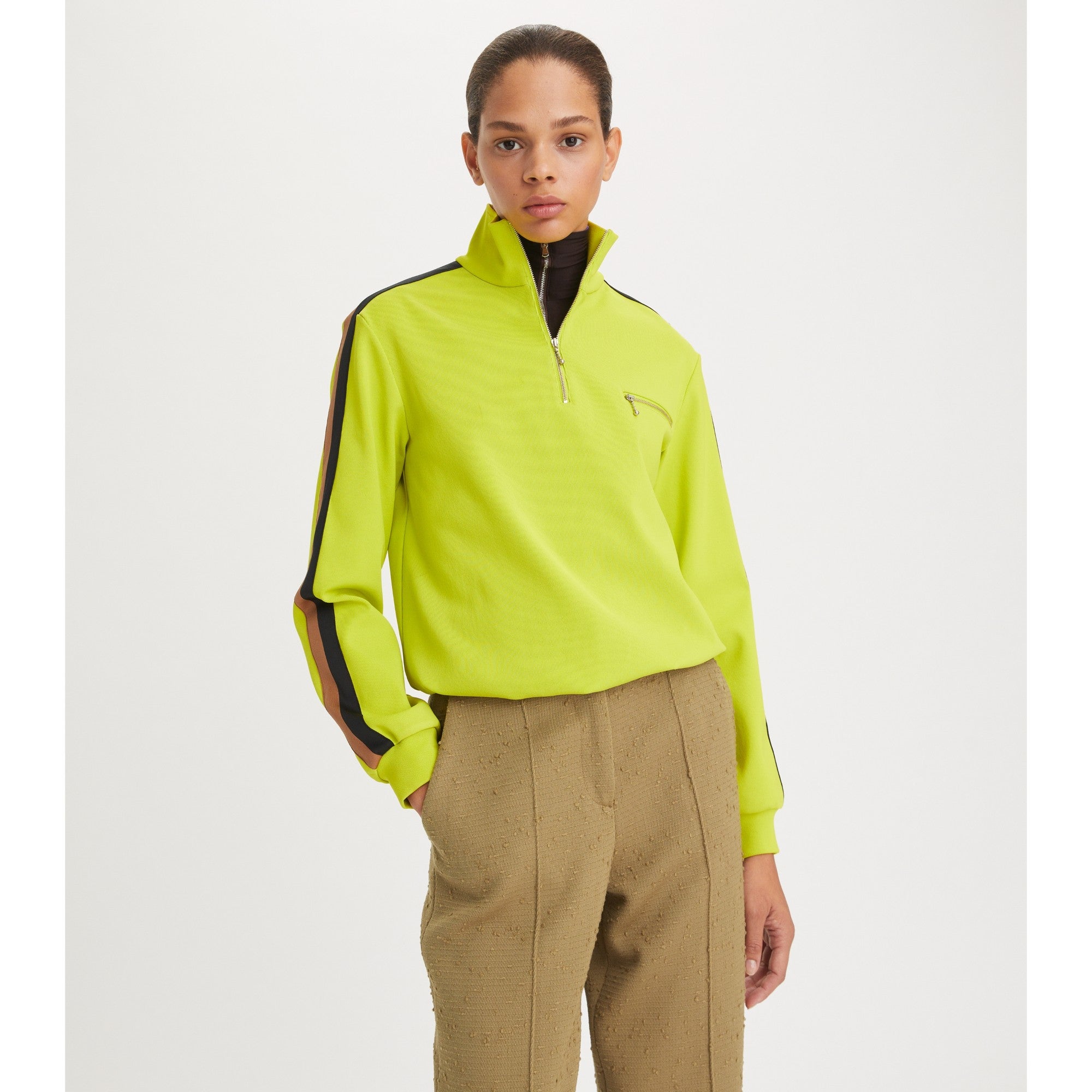 Women Knit Quarter Zip - Bright Lime
