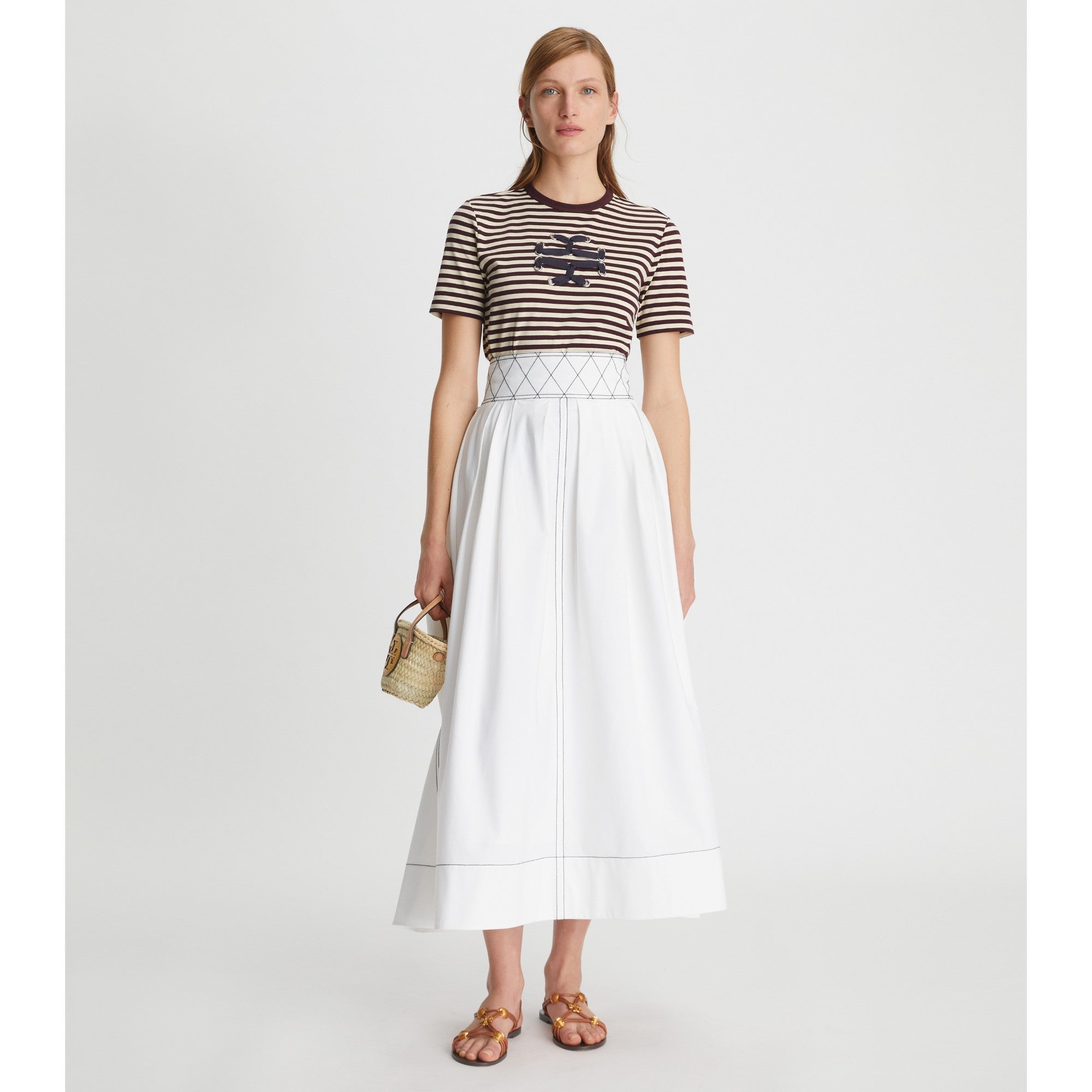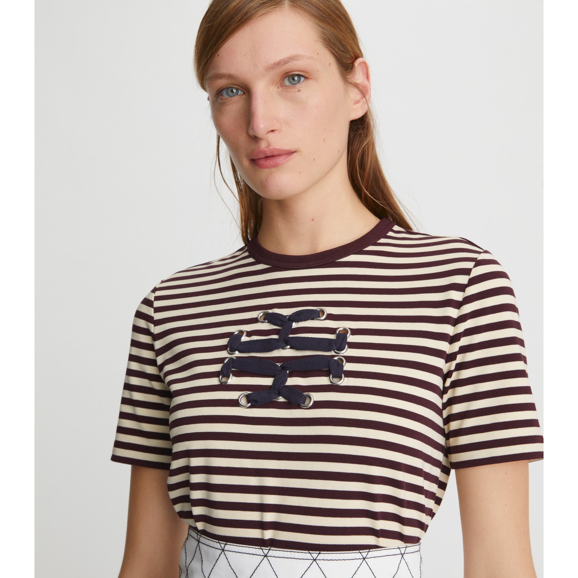 Women Woven Double T T-Shirt - Evening Plum/French Cream