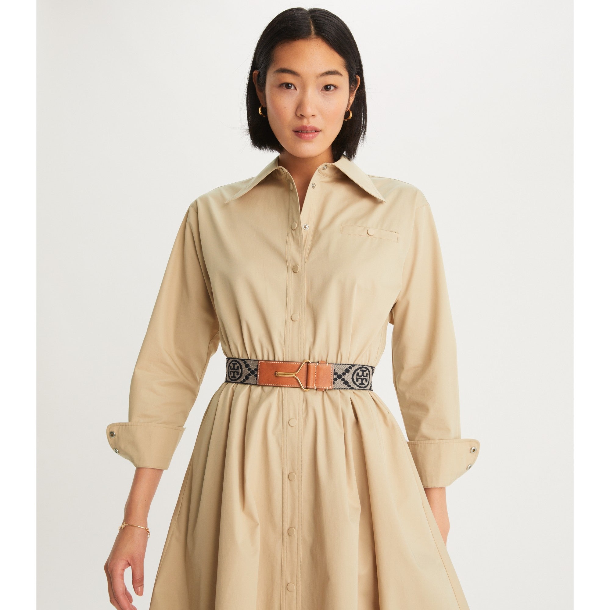Women T Monogram Jacquard Hook Stretch Belt - Tory Navy