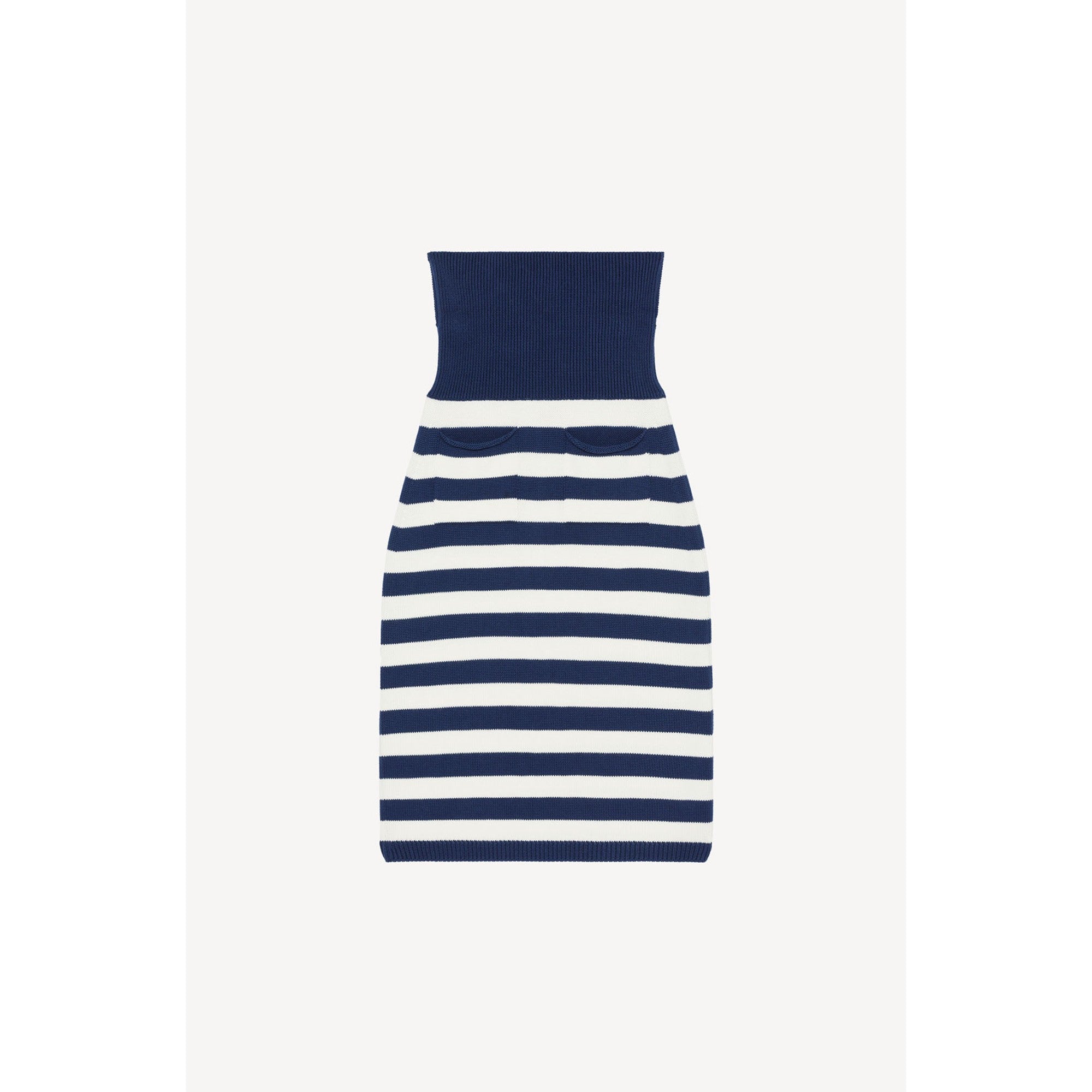 Women Nautical Stripes Midi Skirt - Midnight Blue