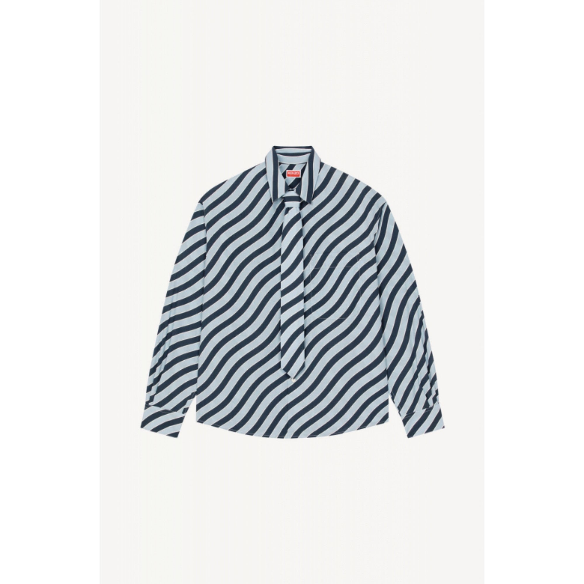 Men Wavy Stripes Tie Casual Shirt - Light Blue